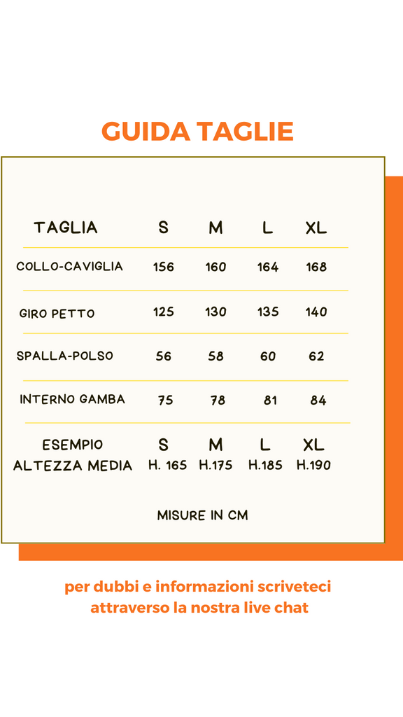 Il modello è unisex per donna ed uomo e le misure dalla S alla XL sono state progettate per adattarsi a quasi tutte le corporature data la morbida vestibilità.